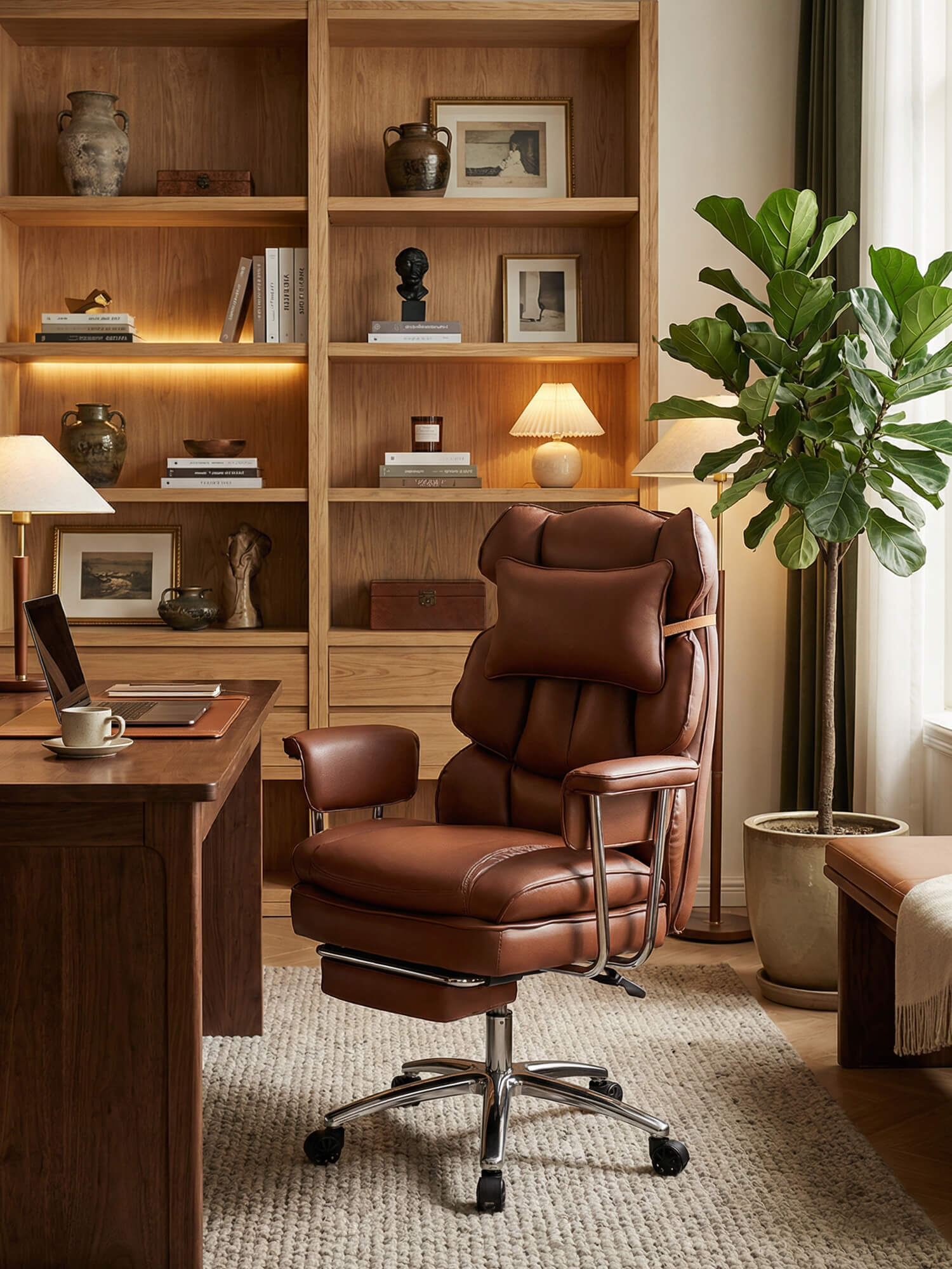 Handcrafted leather chairs blending American tradition with modern comfort.