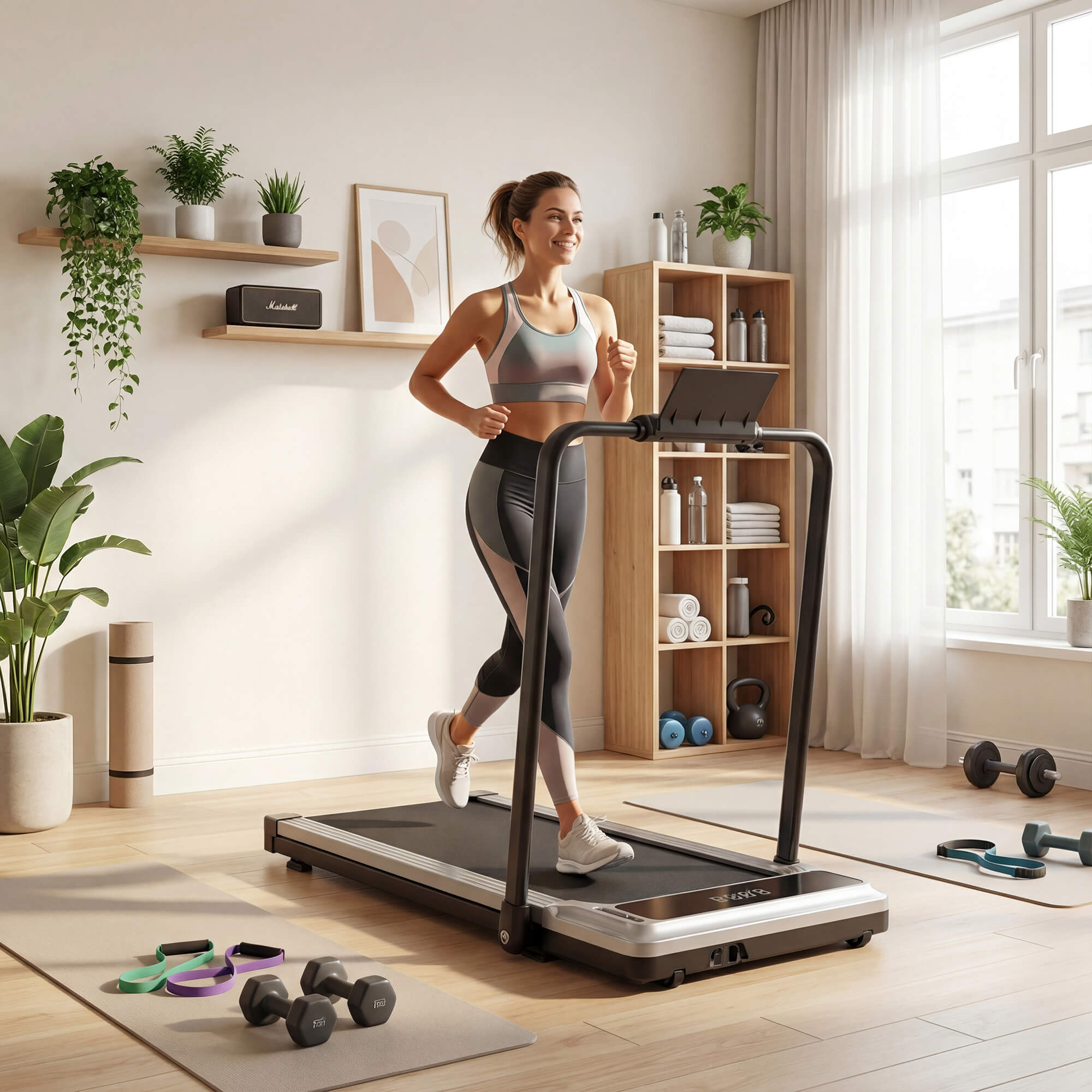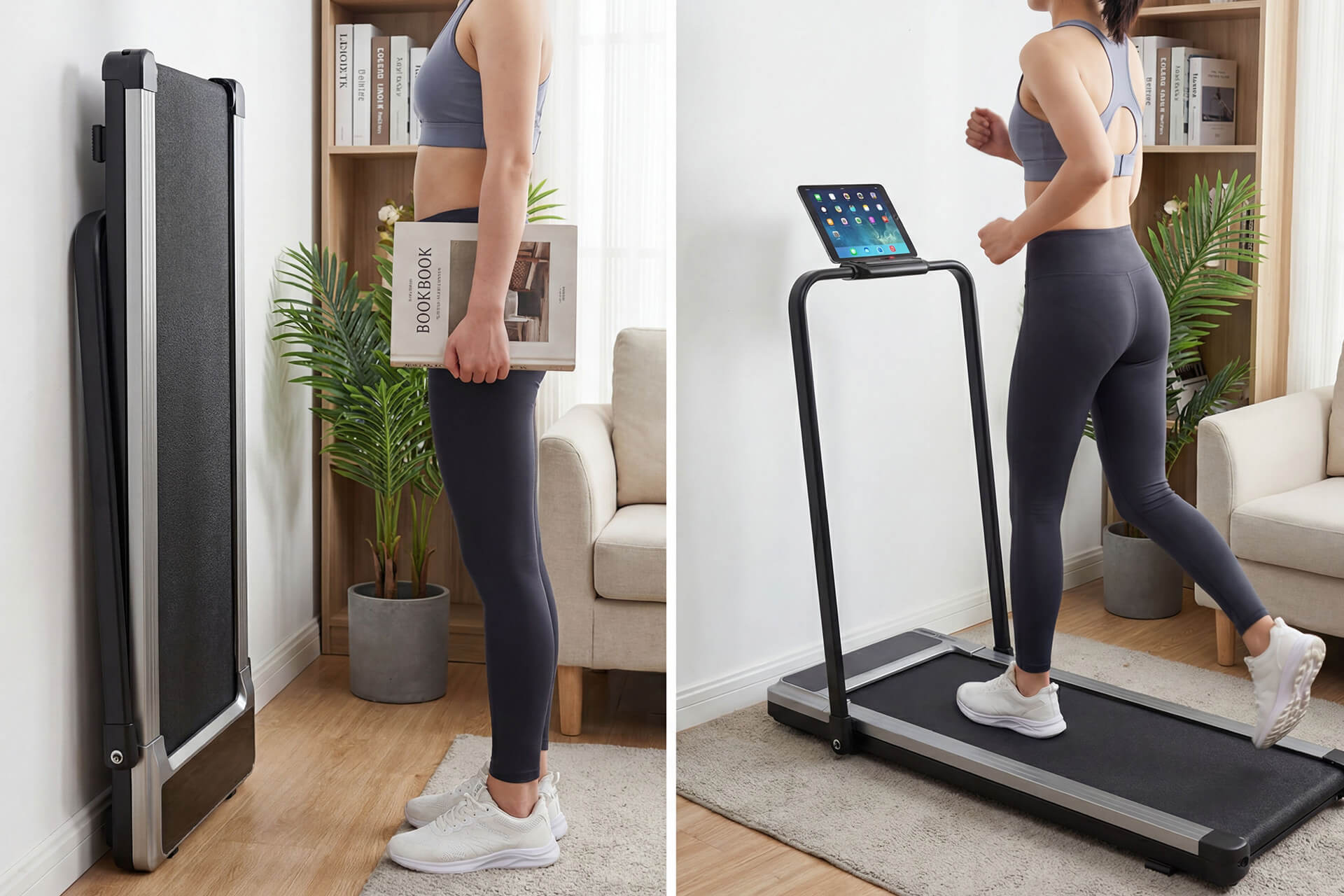 Introducing the Sweetcrispy Foldable Treadmill – your personal path to a more active lifestyle, right in the comfort of your home. Whether it's a brisk morning walk while catching up on news or a gentle evening jog, its compact design and quiet operation fit seamlessly into your living space and daily routine.