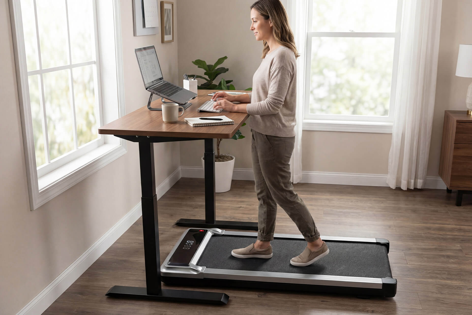 Tailor your workout with three intuitive modes: Work Mode (0.6-1.5 mph) for slow-paced movement while working, Walk Mode (0.6-2.5 mph) for fitness walking, and Run Mode (2.5-3.8 mph) for light jogging.