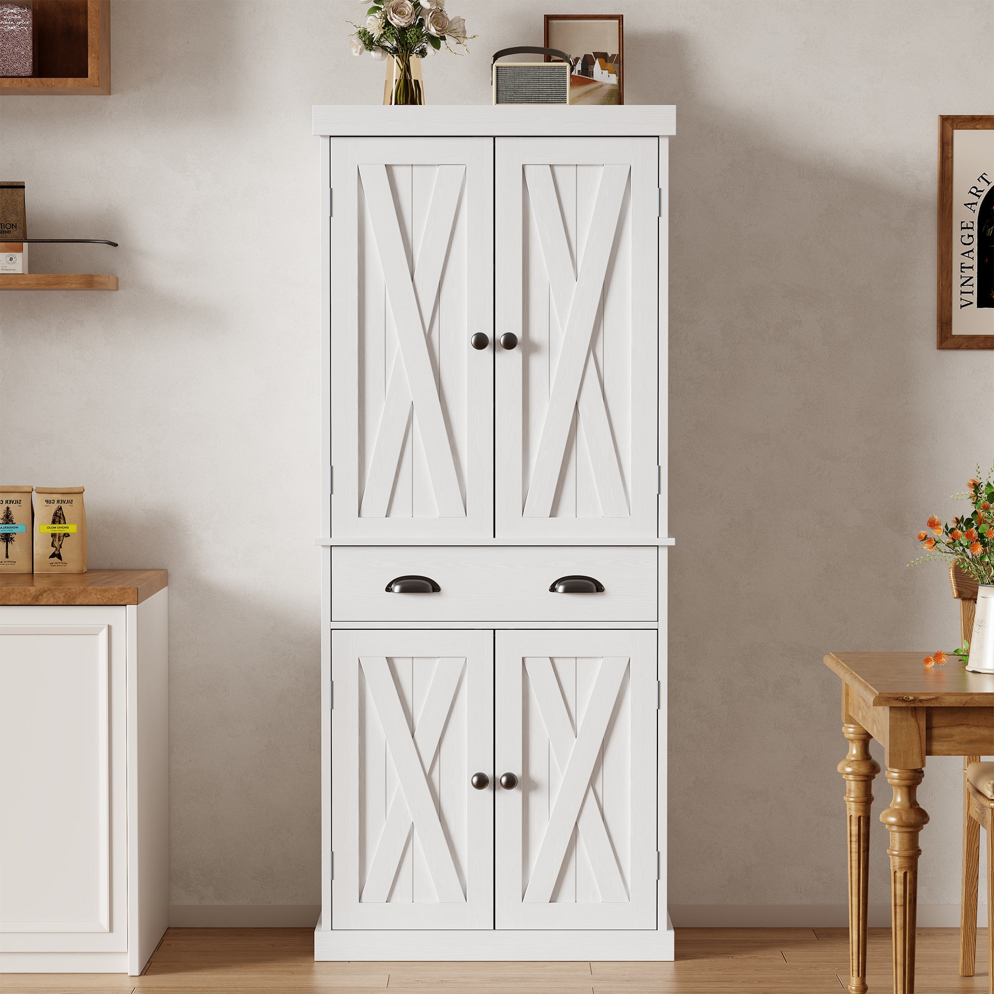 Sweetcrispy 72.2" Tall Kitchen Pantry Storage Cabinet with Adjustable Shelves and Drawer