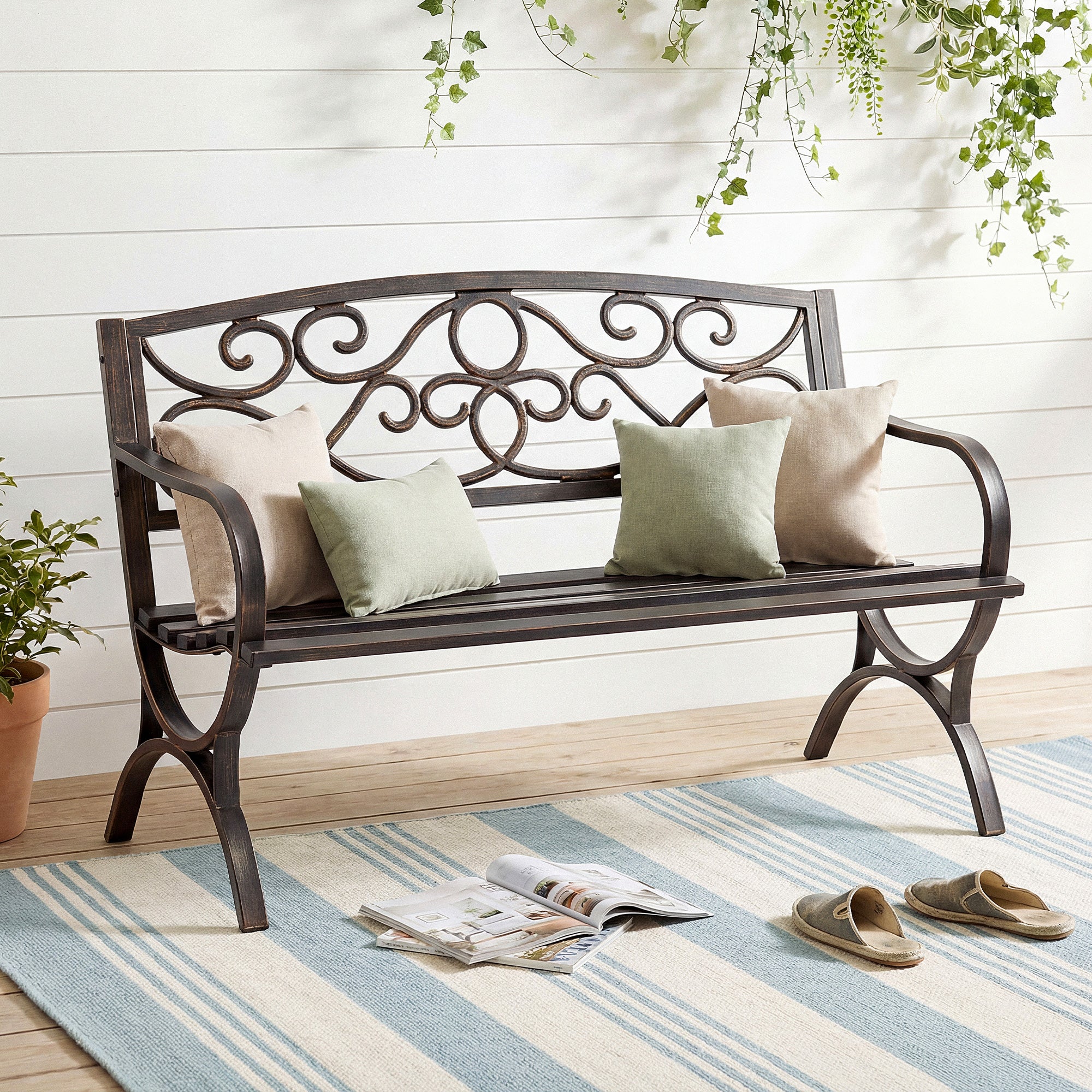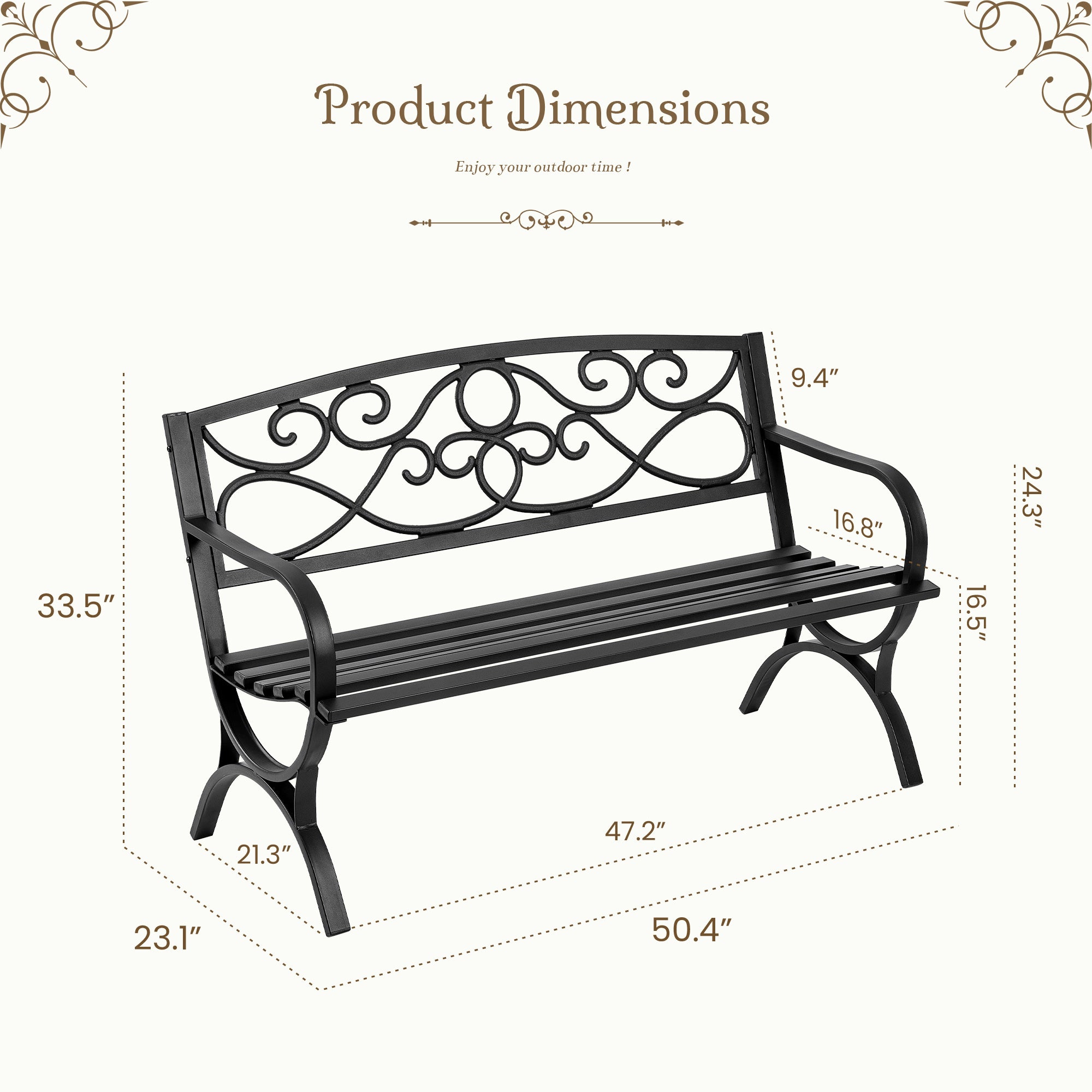 Sweetcrispy 50" Metal Patio Garden Bench for Lawn & Garden