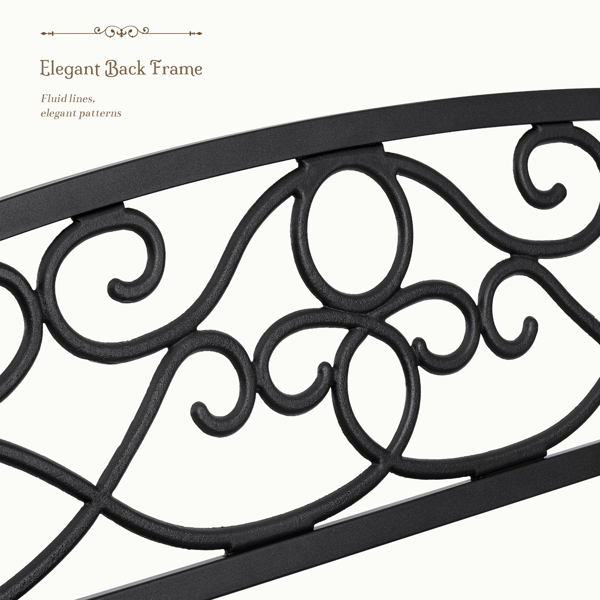 The bench features beautifully sculpted curves along the backrest, adding a touch of sophistication and charm to any outdoor environment. The decorative details elevate the overall look while maintaining a classic style that complements modern or traditional settings.
