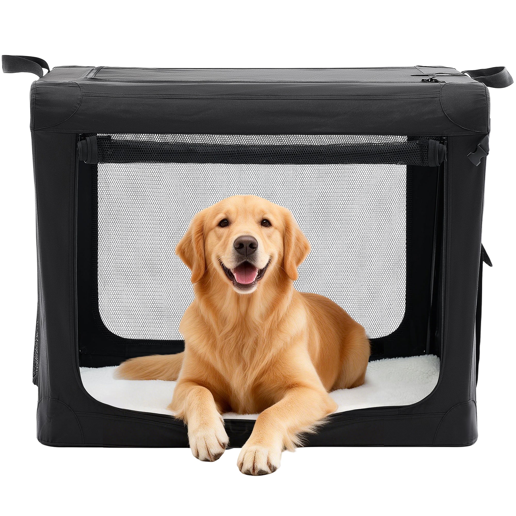 A reinforced steel frame forms the foundation of this foldable pet crate, delivering stability and long-term durability. The 600D Oxford fabric is water-resistant and wear-resistant, while escape-proof zippers enhance security. Reinforced corner protectors add impact resistance, helping protect both the crate and your pet during everyday use.