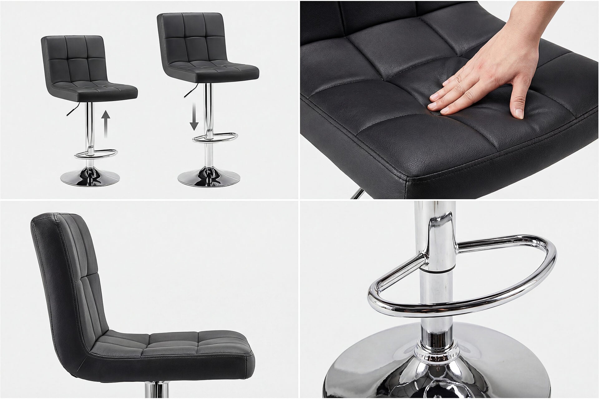 Multifunctional Adjustments: This bar stool is height adjustable from counter to bar height, ensuring comfort for any user.