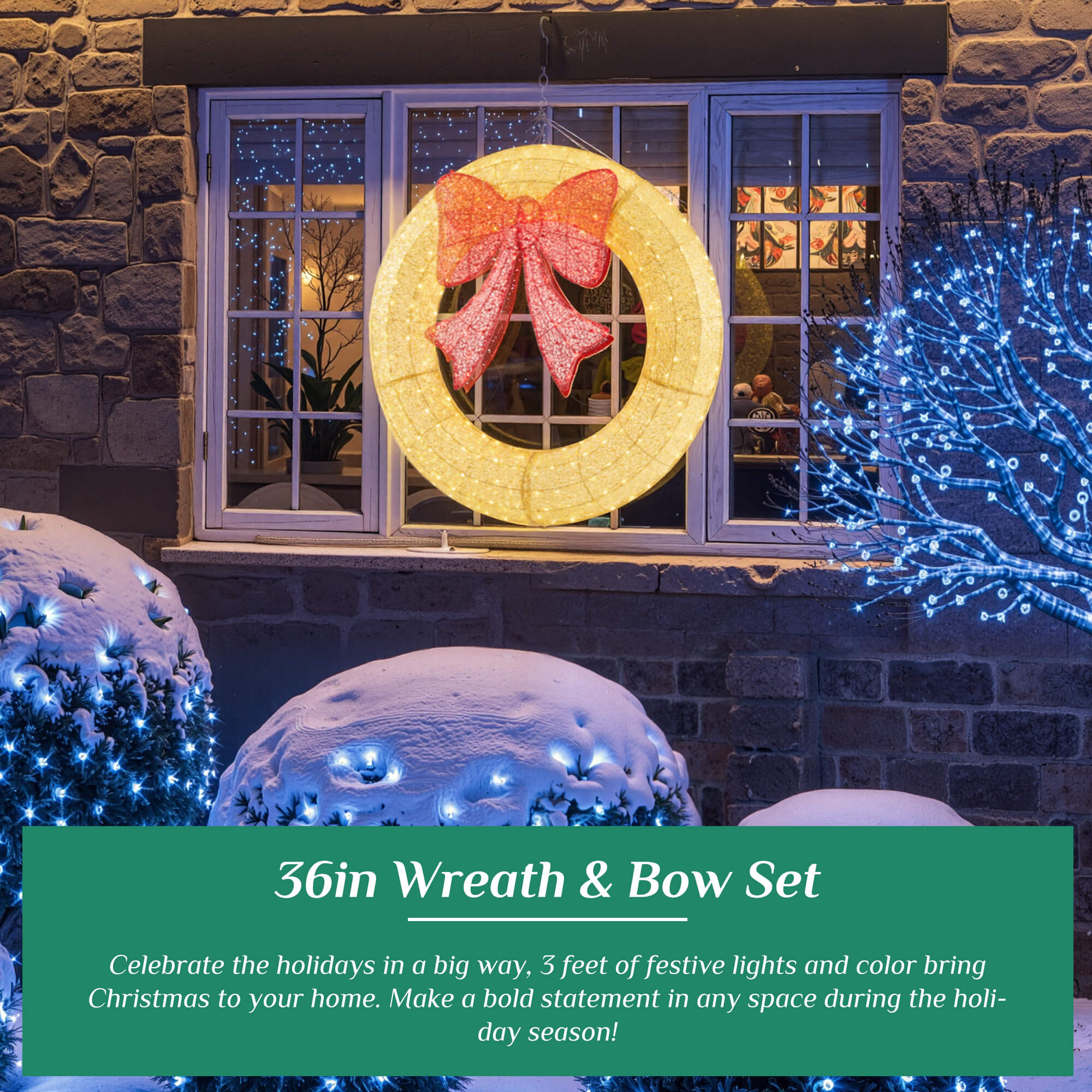 Elevate your holiday home décor with our stunning LED Christmas Wreath. Imagine a grand, professionally decorated wreath adorning your front door or window, its 315 warm white LEDs casting a welcoming and cozy glow throughout the neighborhood. It's more than a decoration—it's the first sign of the warmth and joy waiting inside your home.