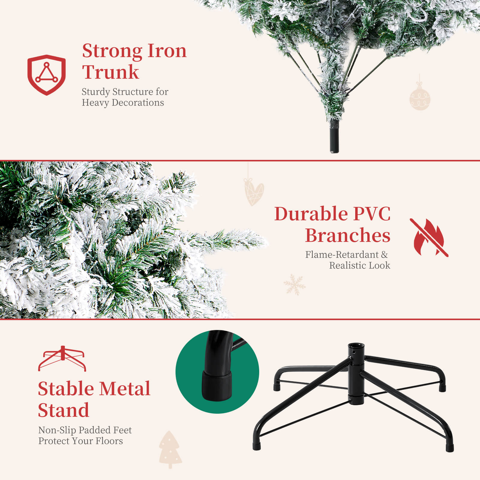 A heavy-duty metal stand with non-slip rubber pads provides a wide, stable base, ensuring your tree—and all your precious ornaments—stay securely upright throughout the festivities.