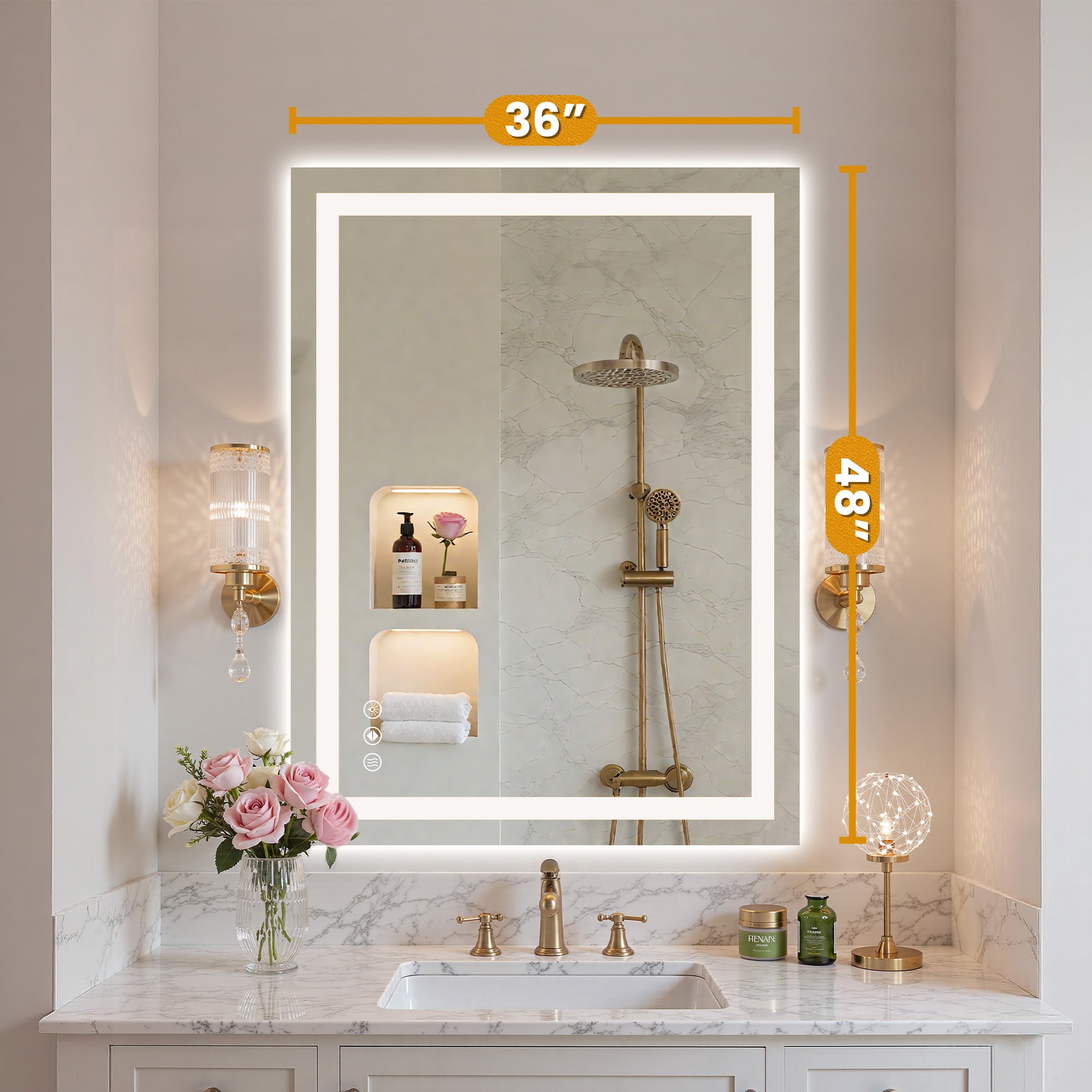 Sweetcrispy Rectangular LED Bathroom Mirror with Anti-Fog & Touch Control