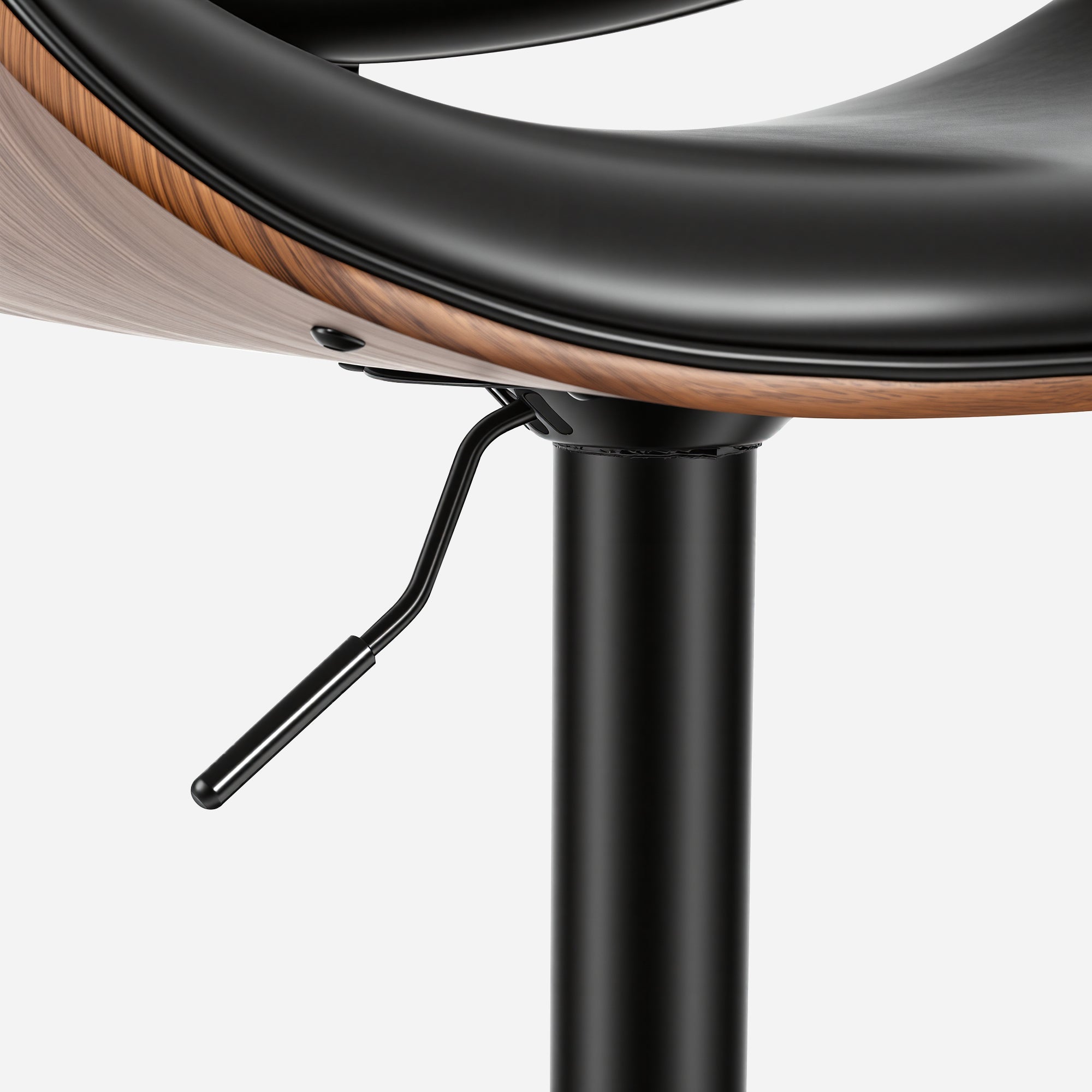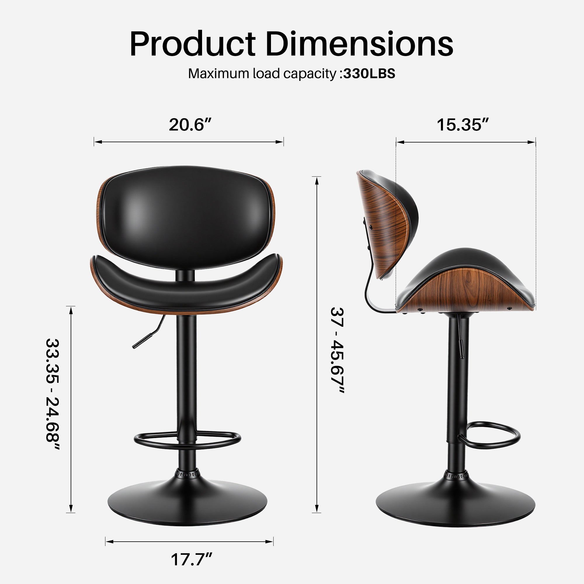 Sweetcrispy Adjustable Bentwood Bar Stools with PU Leather Upholstery and Footrest-Set of 2