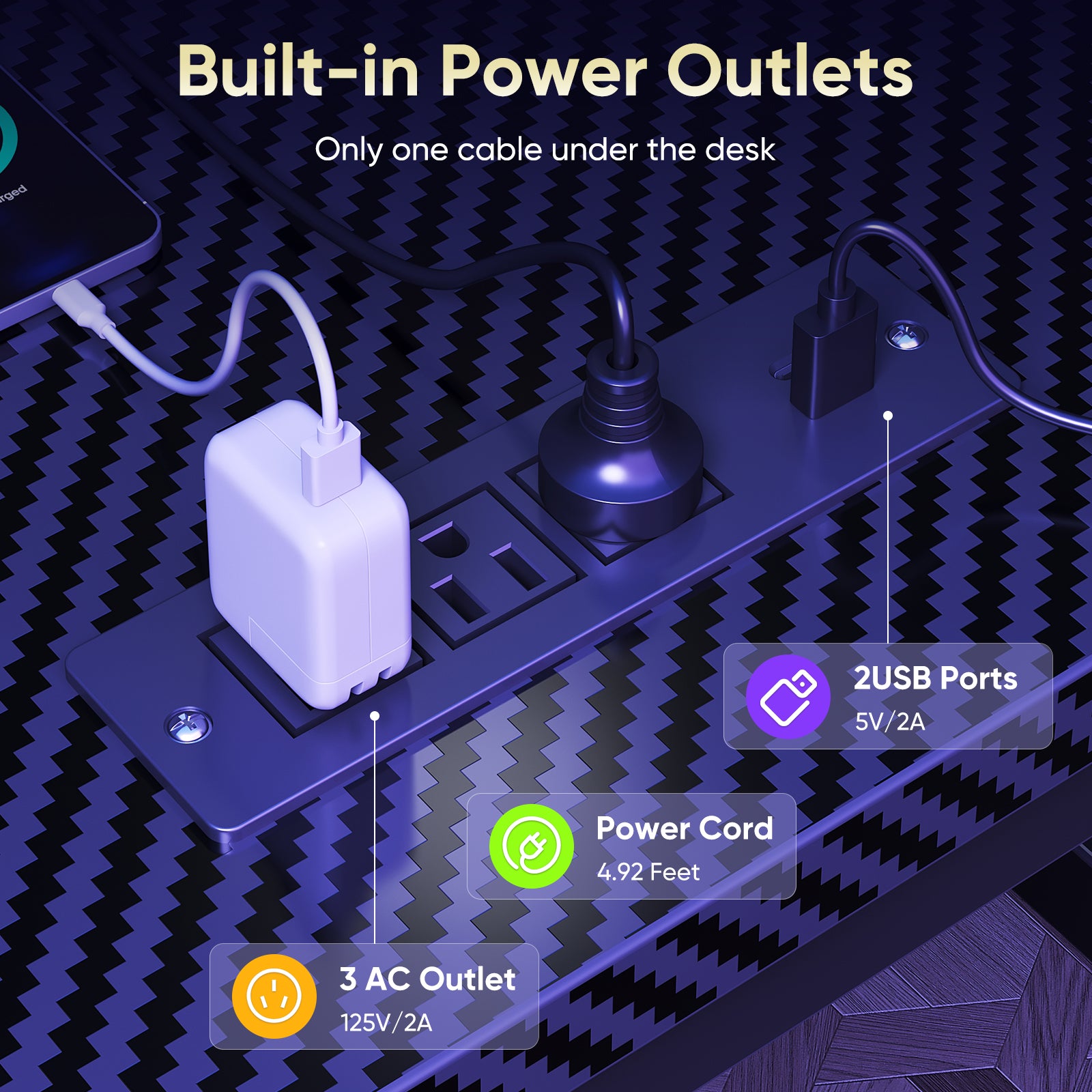 An all-in-one power station features 3 AC outlets, 2 USB ports, and multifunction hooks, making it easy to charge devices and manage cables. Keep your gaming or work setup clean, powered, and clutter-free.