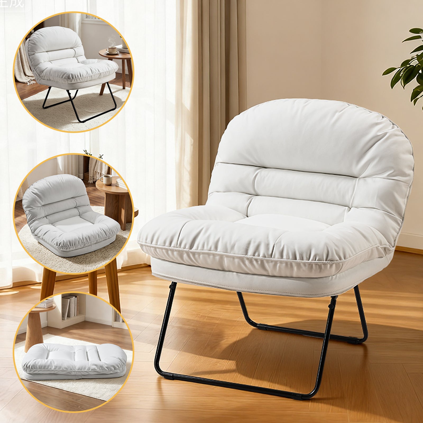 Sweetcrispy Foldable Cushioned Saucer Chair, Lounge Chair with Adjustable Back Support