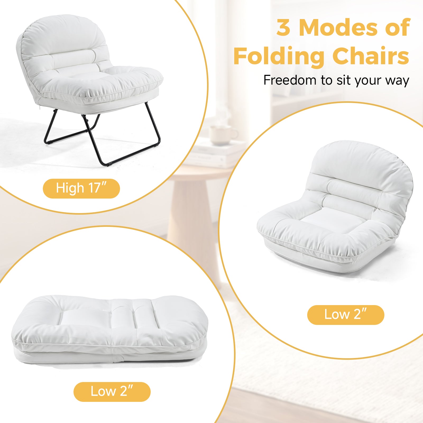 No tools, no assembly—simply unfold and enjoy instant comfort. When not in use, the chair folds flat for easy storage under the bed, in a closet, or against the wall. A smart, space-saving solution for modern living.
