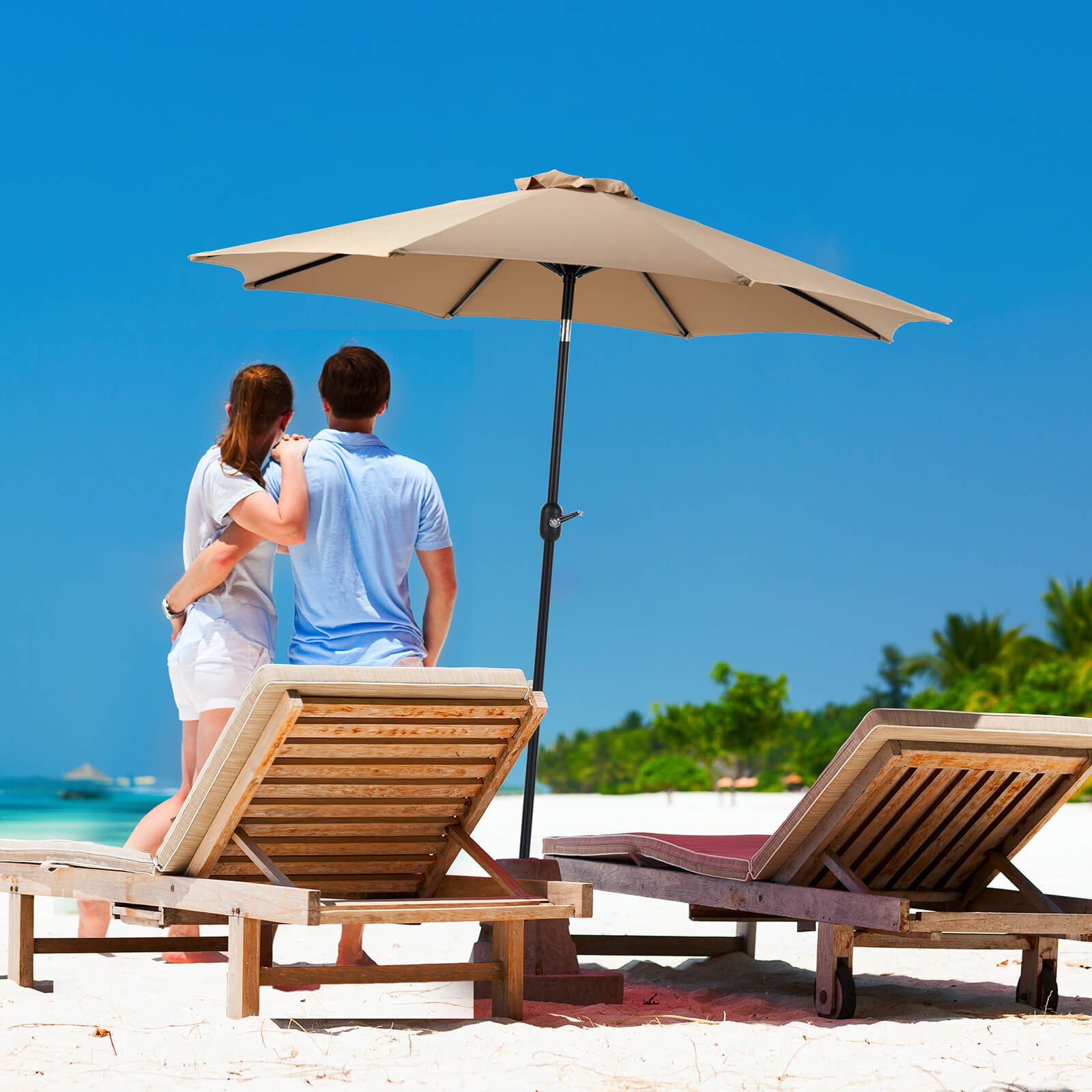 Sturdy Frame Structure: This Sweetcrispy outdoor umbrella is built with a durable 8-rib steel frame for lasting stability. Its 9-foot canopy is ideal for residential and commercial spaces, providing reliable shade and support.