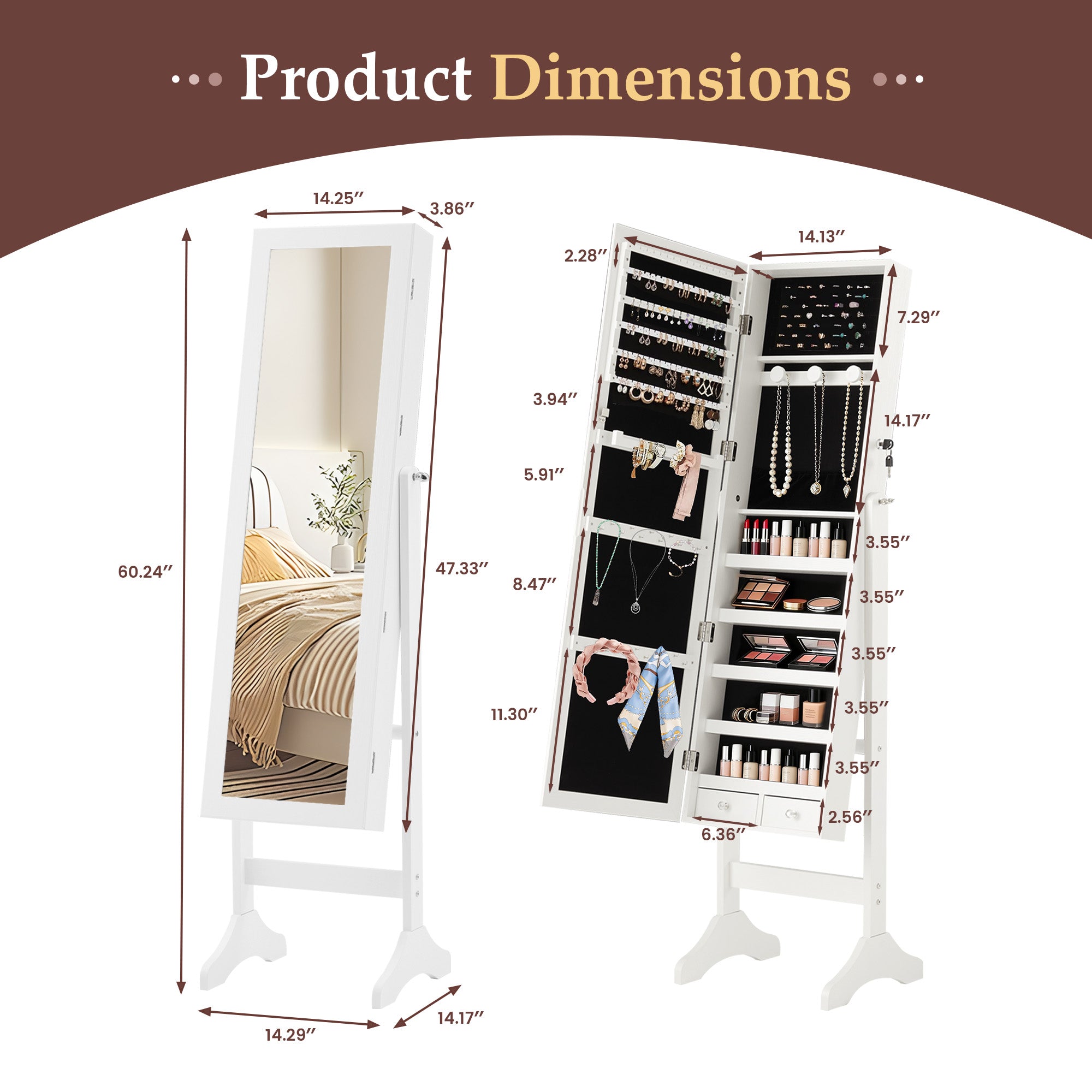 Built with a durable frame and a stable base, this freestanding jewelry armoire is designed for long-term use. The solid structure ensures reliable balance and everyday durability, giving you peace of mind along with elegant storage.