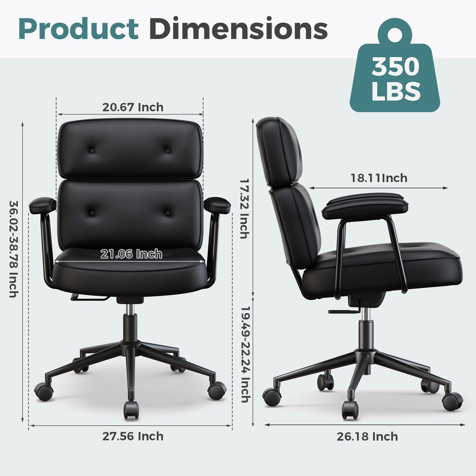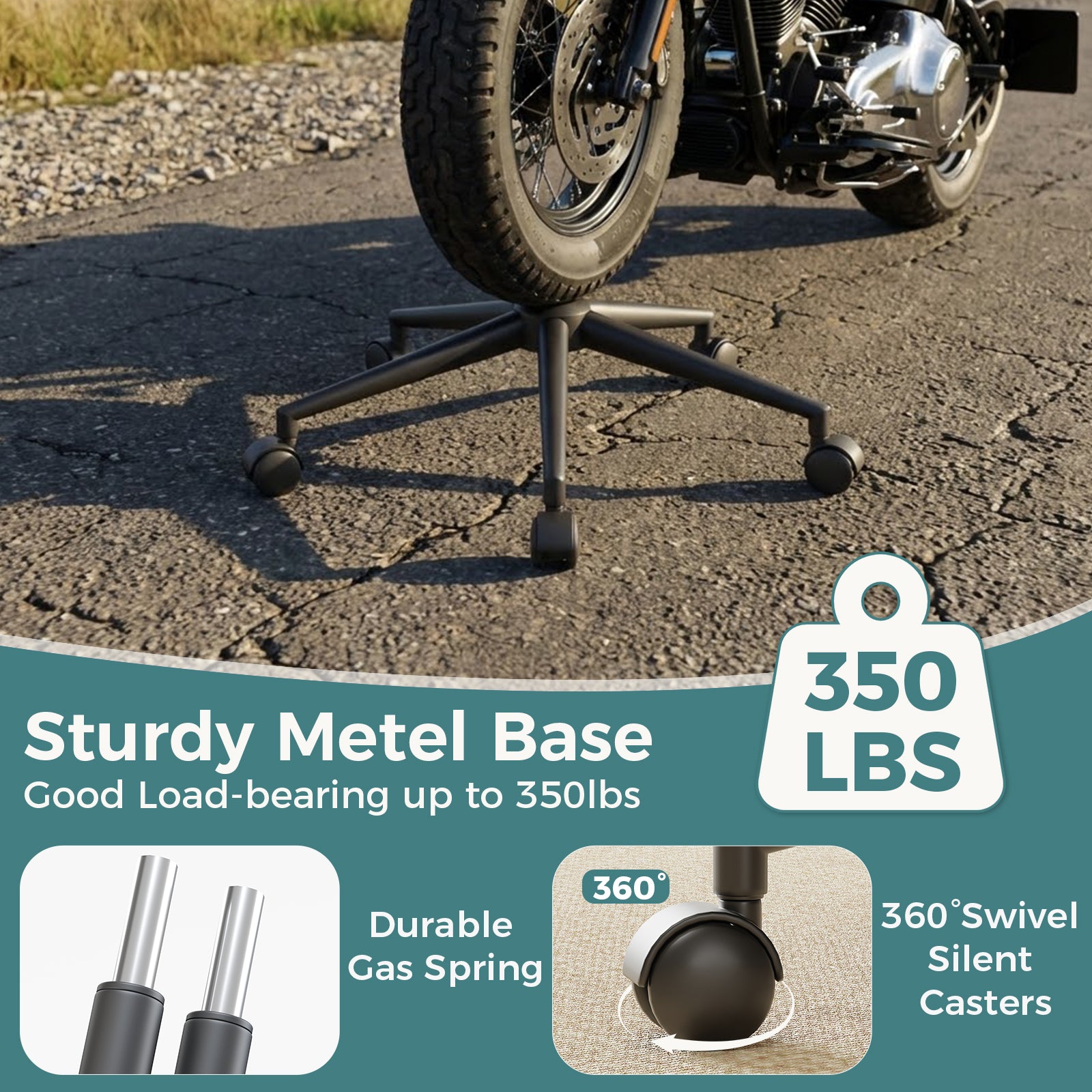 The chair features quiet, smooth-rolling 360° swivel casters that glide effortlessly across hardwood floors, tile, and carpet. Enjoy flexible movement and efficient workflow while protecting your floors from scratches and damage.